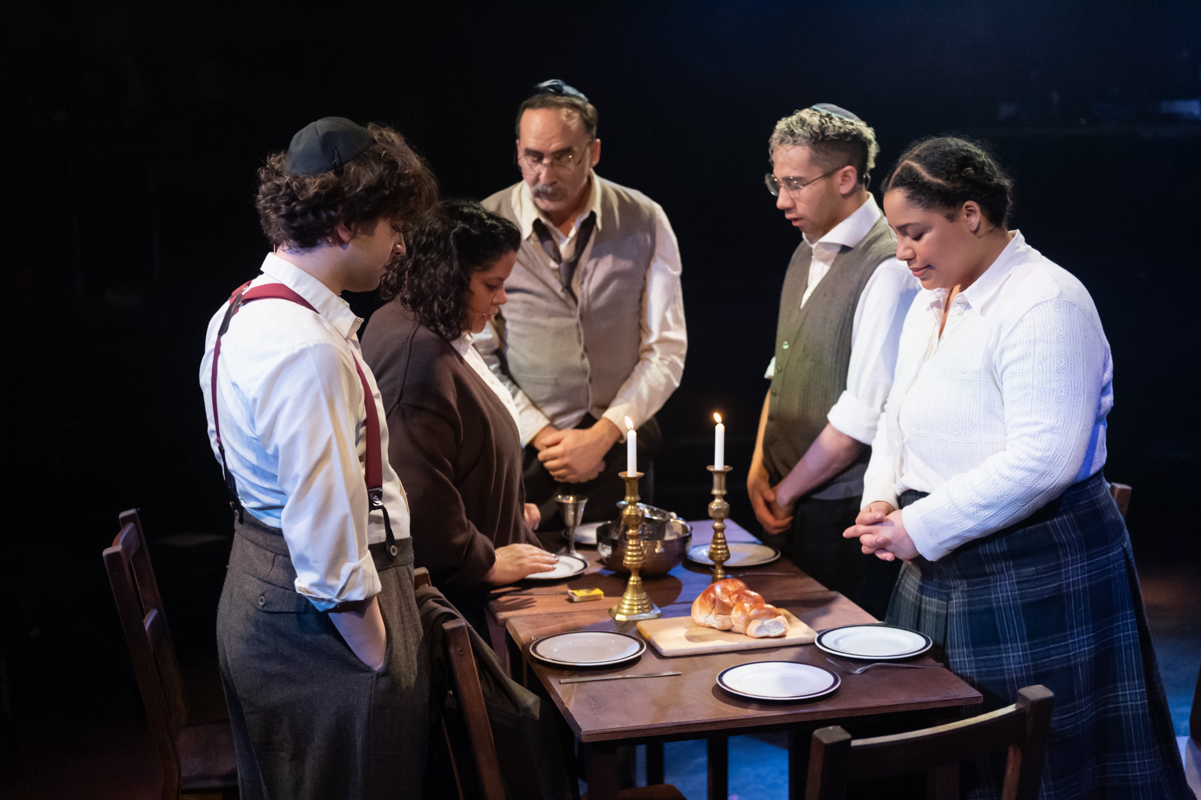 In the East End some of these tensions are felt between the groups, with the Jewish and Irish communities largely staying apart and hostile (the Communists try to bring everyone together but their efforts are too specifically focused on the Spanish Civil War to register with people worried about threats at home.) Kanefsky's story follows a large ensemble of characters from every demographic and political viewpoint, but is centred around a West Side Story central romance between Jewish Sammy (Joshua Ginsberg) and Mairaid (Sha Dessi, one of the show's standouts,) who as a Communist of Irish descent who works in a Jewish bakery, has links to pretty much everyone.